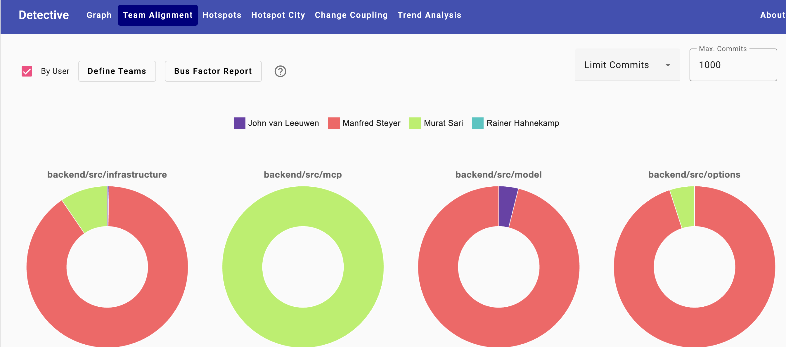 Another area we improved in Detective is the “Bus Factor” within Team Alignment. The data already existed, but it wasn’t shown in the UI.