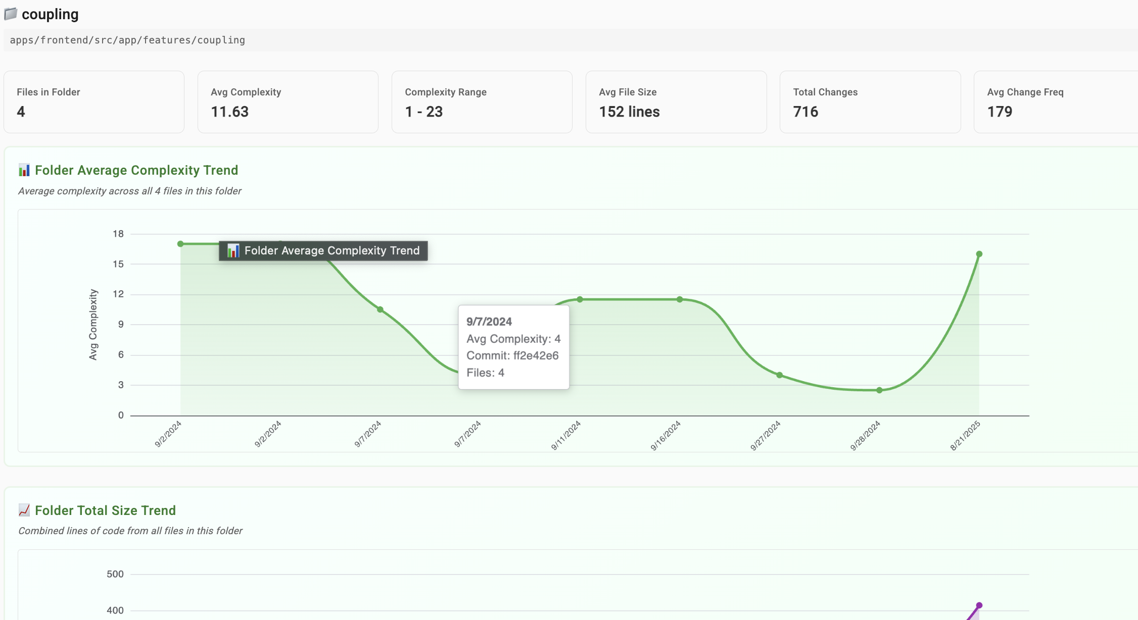 When you click a folder/module, we aggregate the trends to give an overview of all files contained in that folder.
